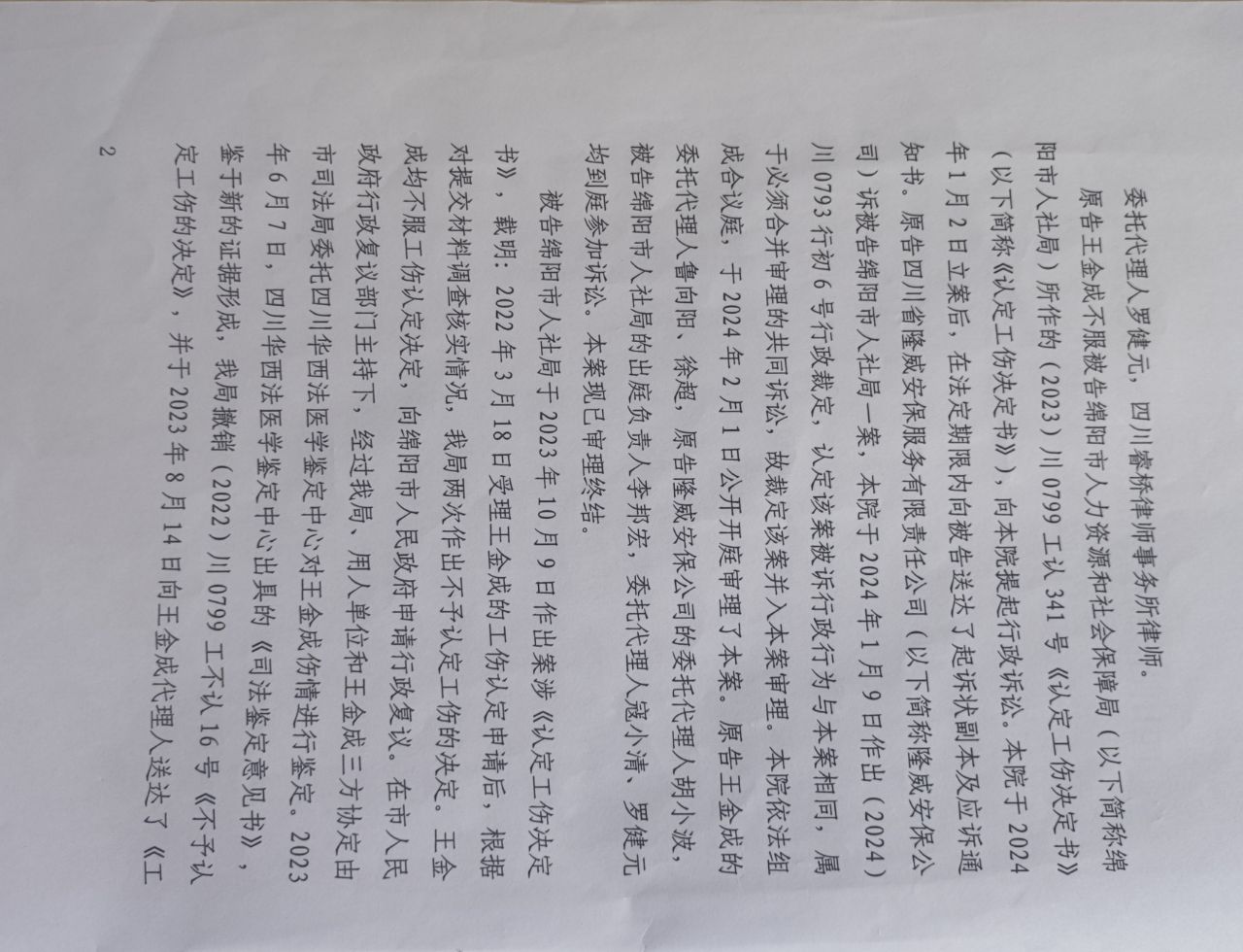- 第一份判决(2024年4月22日生效):确认“腿部为工伤”的事实,且仅因程序理由撤销原认定书,该事实认定仍具有约束力;