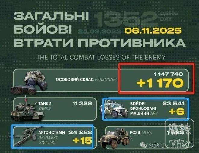 过去24小时,前线发生260次战斗,俄军损失新增1170人,代价继续走高。