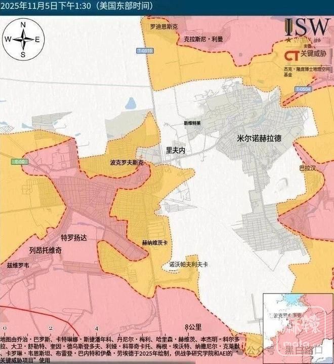 波克罗夫斯克方向,市区大部分地区处于灰色地带(战斗仍在进行,双方均无法有效控制),乌军正竭力阻止俄军占领该镇。