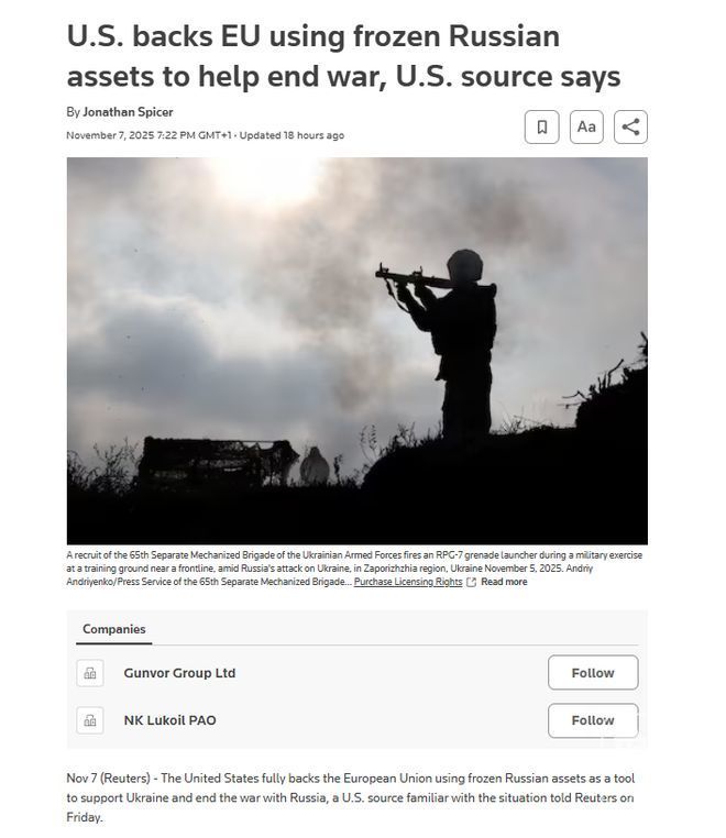 据一位美国官员称,美国完全支持欧盟直接利用被冻结的俄罗斯资产(价值高达1850亿欧元)援助乌克兰并帮助结束战争的计划。但目前比利时(这些资产大部分由该国持有)仍然没有对此事松口。