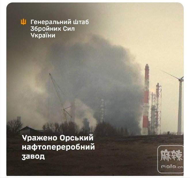 乌总参确认,乌克兰无人机昨日袭击了俄罗斯奥伦堡地区奥尔斯克炼油厂的袭击。