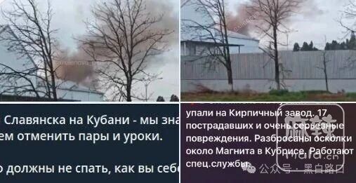 俄罗斯库班河畔斯拉维扬斯克的一家砖厂遭乌克兰无人机袭击,损失有待确认。