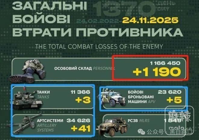 过去24小时,前线发生191次战斗,俄军损失新增1190人,代价继续走高。