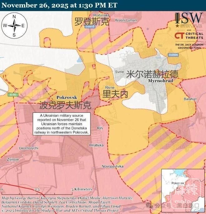 ISW指出,截至11月26日,俄军仅巩固波克罗夫斯克66%的区域,考虑到俄军投入时间和人力(至少两个合成集团军的部分兵力),这一比例相当低。