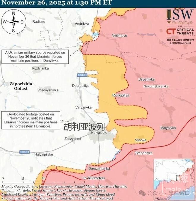 扎波罗热方向,俄军向里夫内-波列以西、扎季什耶以南推进,并占领维索科耶村,俄军的推进使胡利亚波列东北郊区面临威胁。
