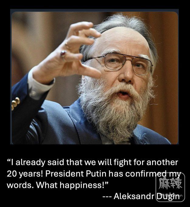 普京的意识形态理论家亚历山大·杜金表示,“我已经说过,我们将再战20年!普京总统已证实了我的话。多么幸福啊!”
