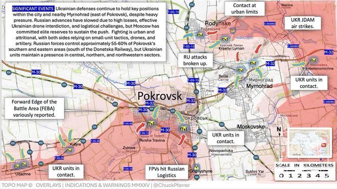与此同时,乌军重新夺回了波克罗夫斯克铁路沿线有争议的城市街区,并确保了通往米尔诺格勒的生命线保持畅通。
