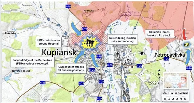 当然,就整个库皮扬斯克战区而言,战斗还远没有结束,俄罗斯正在库城周边,采用渗透战术(例如在彼得罗帕夫利夫卡、皮什恰内附近)。