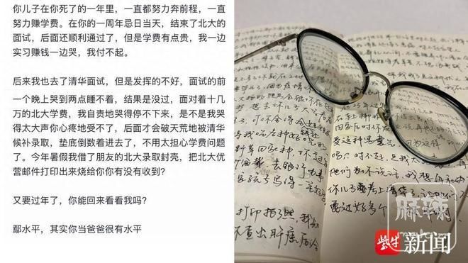 “儿子在你去世的一年里,一直都努力奔前程,如今破天荒地被清华大学候补录取。又要过年了,你能回来看看我吗?”