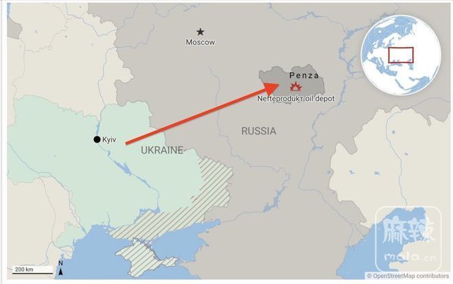 几天前,乌克兰无人机袭击了位于距乌克兰边境500公里处的俄罗斯石油公司在彼尔姆的油库。卫星图像证实至少有一个燃料罐被摧毁,另有多个受损。大火燃烧了2天以上,共摧毁了18个储油池,总容量为21,600立方米。