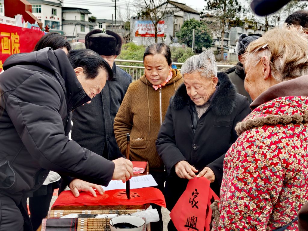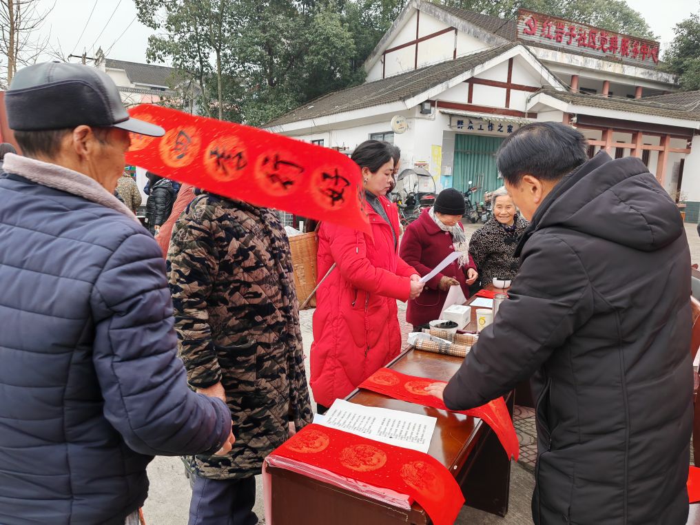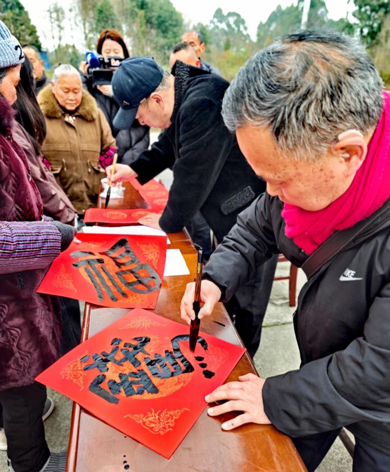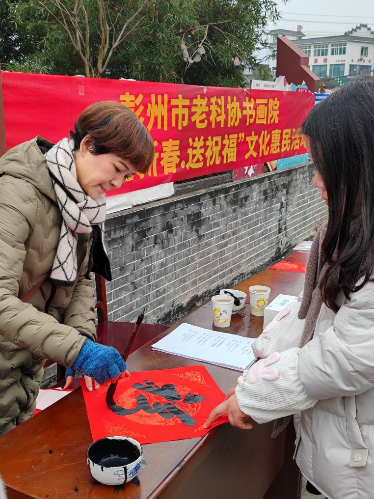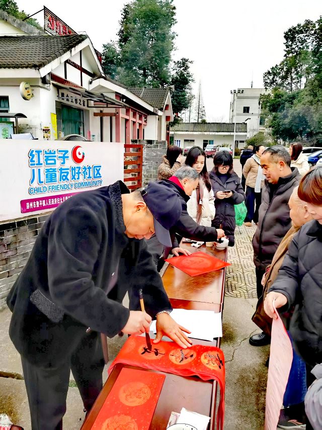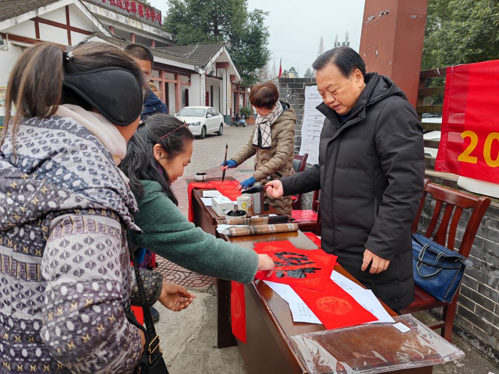 墨香暖寒冬 福字送万家 彭州市老科协联合红岩子社区开展写春联送祝福活动