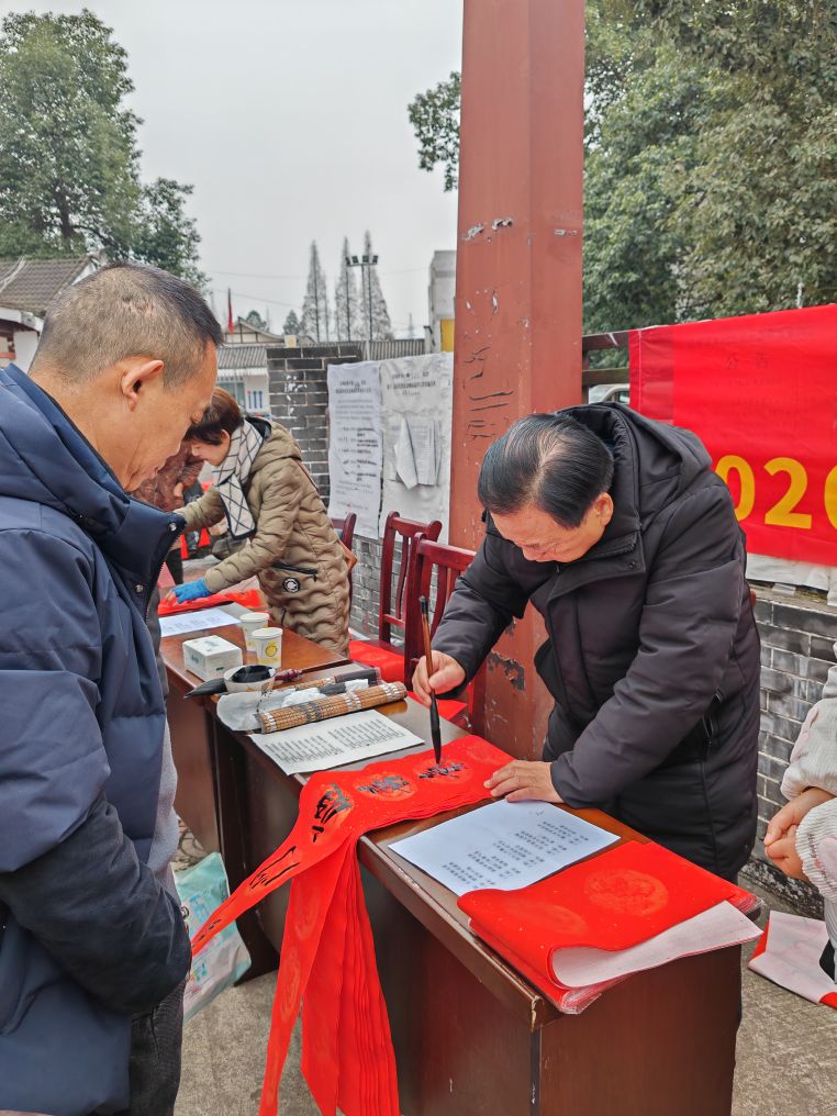 冬日阴雨挡不住新春暖意,笔墨书香传递着美好祝愿。在彭州市老科协的统一安排下,经过敖平镇老科协的努力工作,事前市老科协书画院、社区等相关单位多方沟通协调,在敖平镇党委政府的关心支持下,马年春节前夕,市老科协、敖平镇老科协、敖平镇红岩子社区联合举办了迎“2026年迎新春送祝福.文化惠民活动”。