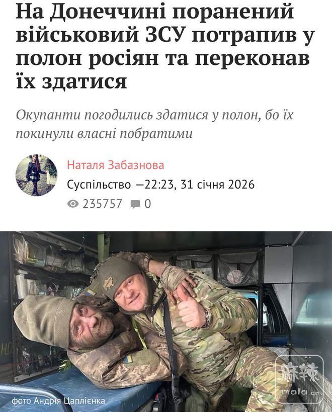 同样在顿涅茨克地区,一名受伤的乌克兰士兵在被俄罗斯人俘获之后,反过来带着看守他的士兵向乌军投降。