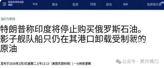 目前,俄罗斯以超低价格向印度倾销受制裁的石油,CNBC援引Kpler的数据报道称,在特朗普宣布印度停止购买俄罗斯石油后,印度仍公开在其港口卸载受纸草的石油。
