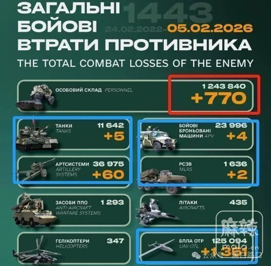 过去24小时,前线发生133次战斗,俄军损失新增770人,代价继续走高。