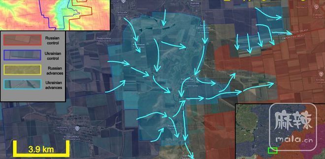 此外,乌克兰军队开始从多布罗皮利亚向东挺进,穿过田野,重新夺回那里的山脊地带阵地,并继续向东渗透至索洛德卡方向。他们还从东北方向穿越沟壑,试图切断位于诺沃扎波罗热东南方向强据点中的俄罗斯阵地。