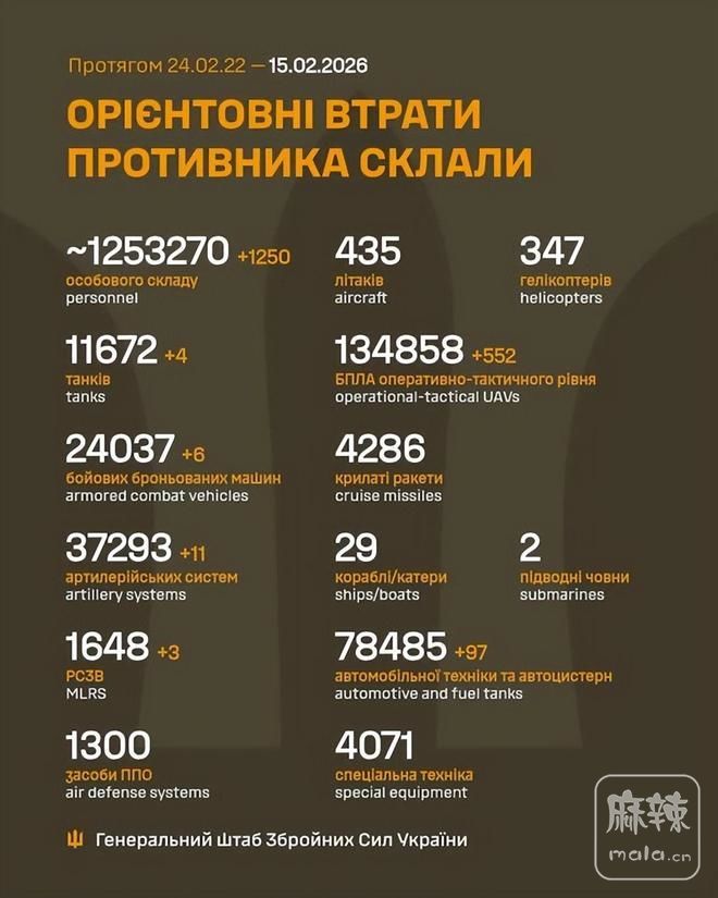 乌总参公布的昨日战果,歼敌(击毙+重伤)1250人。