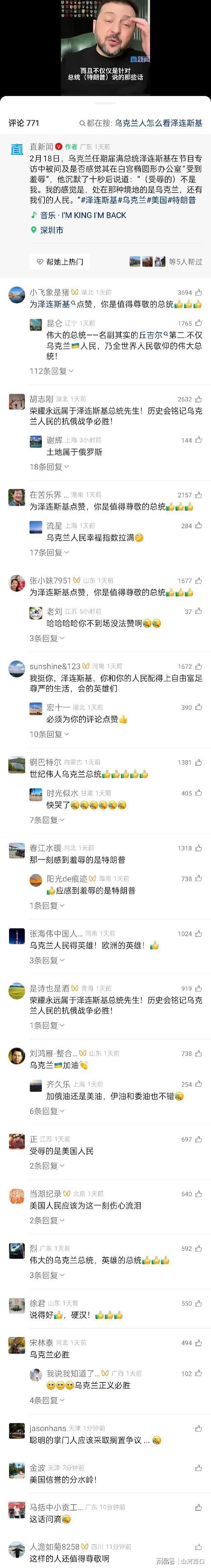 这个视频最大的问题是将泽连斯基标注为“乌克兰任期届满总统”,显得不伦不类,而且评论区很炸裂。