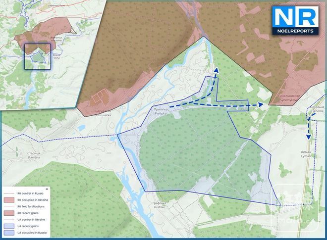 沃夫昌斯克方向,乌克兰武装部队重新控制了赫拉夫斯克剩余区域、普里利普卡的部分地区,并沿着谢维尔斯基顿涅茨河向森林地带推进,目标指向锡涅利尼科夫。