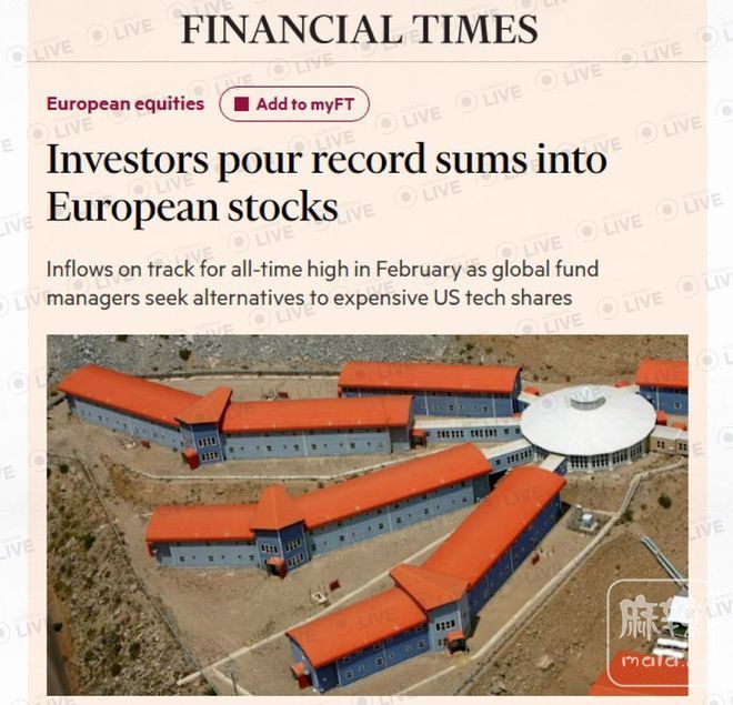 《金融时报》称,投资者正将巨额资金从美国转移到欧洲。今年二月,欧洲股市的投资额或将创下历史新高——仅上半月,每周的投资额就高达约100亿美元。