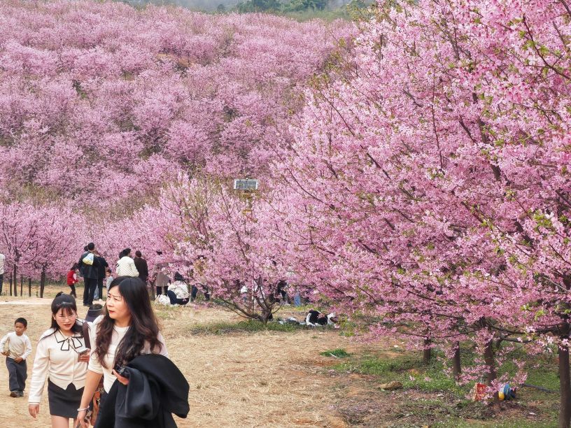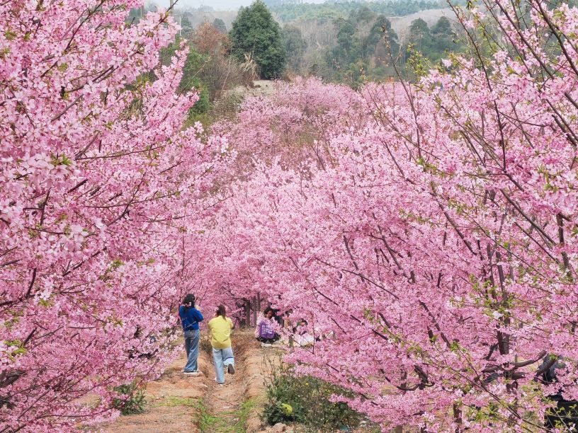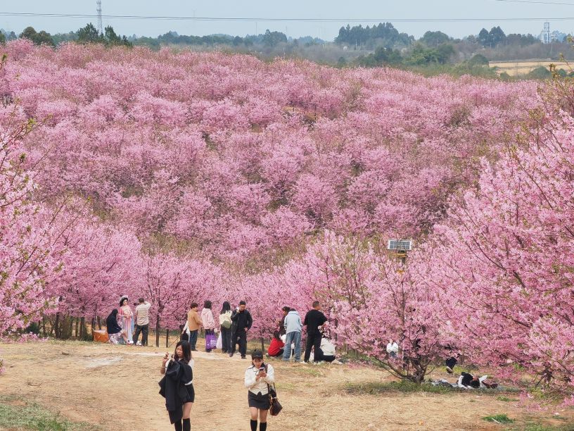彭州漫山樱花谷繁花盛放 500亩粉色花海醉游人