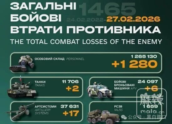 过去24小时,前线发生230次战斗,俄军损失新增1280人,代价继续走高。
