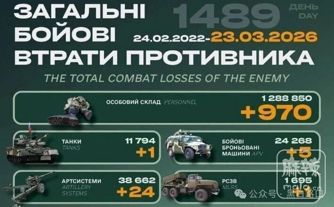 过去24小时,前线发生134次战斗,俄军损失新增970人,代价继续走高。