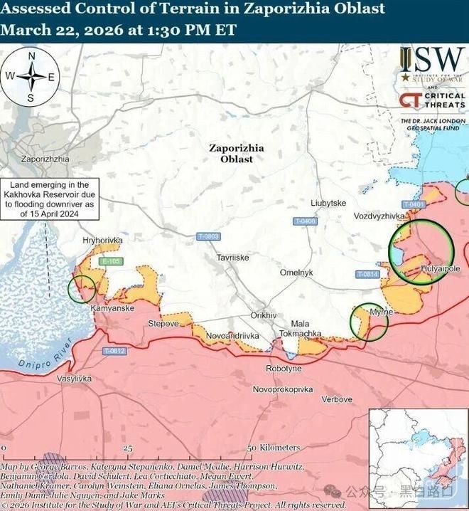 扎波罗热方向,乌军在胡利亚伊波列和扎波罗热西部取得进展,迫使俄罗斯不得不重新向乌克兰南部部署兵力,扰乱了俄军的春夏攻势。为应对乌克兰在胡利亚伊波列和奥列克桑德里夫卡方向取得的胜利,俄军不太可能在要塞带地区取得重大进展。