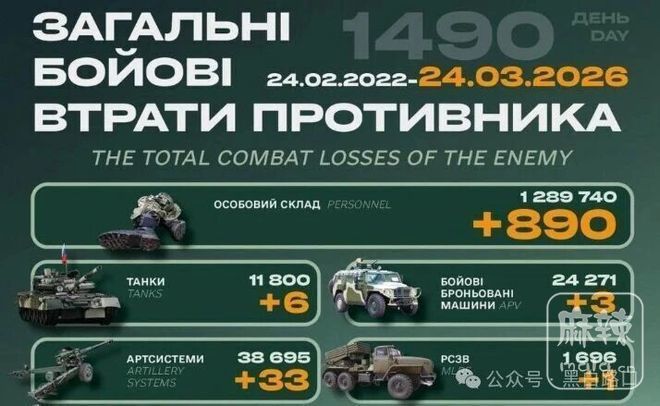 过去24小时,前线发生168次战斗,俄军损失新增890人,代价继续走高。