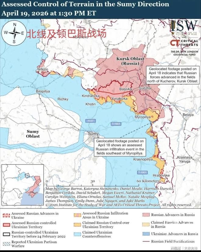 战争研究所(|SW)对过去一天战场动态汇总如下: